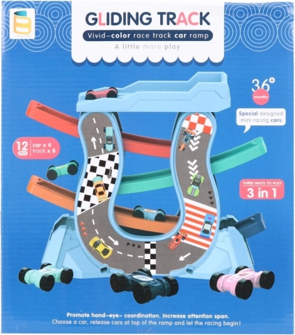 Ova plastična trkaća staza–tobogan idealna je za prve trkaće avanture. Djeca promatraju kako autići jure niz tobogane te pritom vježbaju koncentraciju i finu motoriku. Pogodno za svakodnevnu igru kod kuće i u vrtiću.