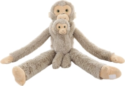 Ovaj mekani plišani majmun s mladunčetom osvojit će srce svakog malog ljubitelja životinja. Duge, podatne ruke s čičkom omogućuju da se majmun privije uz dijete ili objesi, dok odvojivo mladunče razvija igru uloga i finu motoriku.