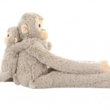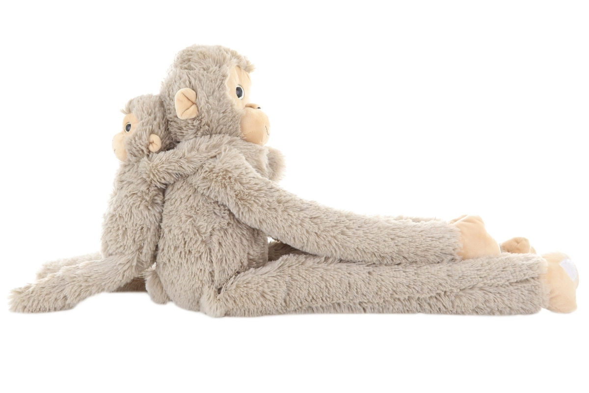 Preslatki plišani majmun s odvojivim mladunčetom idealan je mazni pratitelj za djecu već od rođenja. Zahvaljujući ekstra dugim udovima i čičak traci na rukama lako se obavije oko djeteta, krevetića ili kolica. Mekano, baršunasto izvođenje jamči udobnost pri maženju i uspavljivanju, a odvojivo mladunče potiče maštu tijekom zajedničke igre.