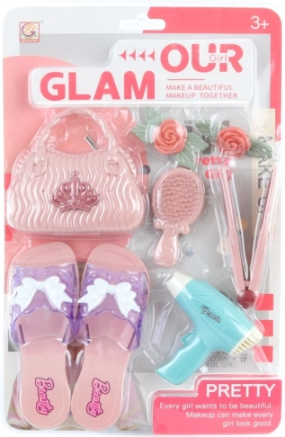 Preslatki dječji set za ljepotu razveselit će svaku malu modnu damu. Sadrži cipelice, torbicu, sušilo za kosu, peglu za kosu, češalj i druge dodatke za kreativnu igru. Idealno za djecu od 3 godine te za razvoj mašte i fine motorike.