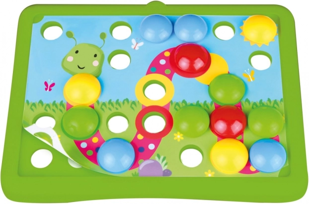 Otkrijte kreativnu igru koja razvija maštu i vještine. Djeca umeću šarene klinove u predloške s prirodnim motivima (npr. gusjenica, cvijeće ili životinje) te uvježbavaju preciznost, strpljenje i prepoznavanje boja. Velike rupice i klinovi dobro leže u ruci i olakšavaju rukovanje malim rukama.