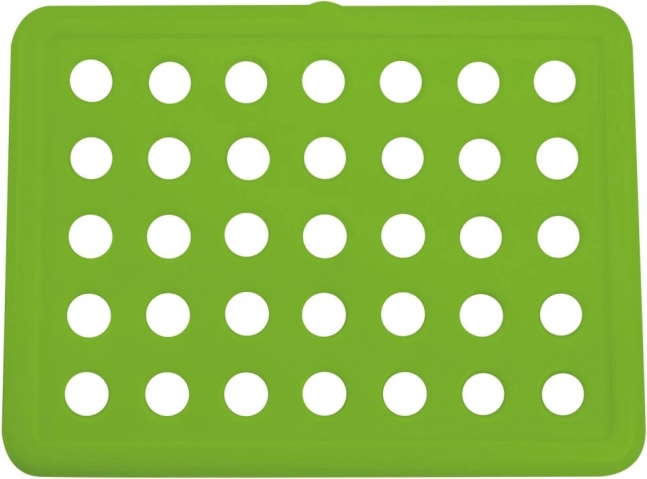 Stabilna podloga s izraženim otvorima pomaže djeci točno postaviti klinove i poboljšava koordinaciju oko–ruka.