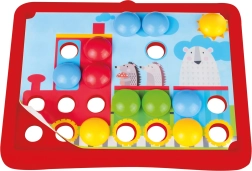Robusna plastična izrada osigurava izdržljivost i dugu trajnost. Djeca mogu ponovno i ponovno umetati čepiće i stvarati vlastite uzorke, čime treniraju koordinaciju oko–ruka i koncentraciju. Praktično pakiranje pogodno je za dom i putovanja.