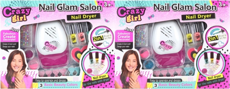Dječje studijo za nokte sa sušilicom odličan je set za male stilistice. Sadrži sve potrebno za prvu manikuru: sušilicu za nokte na baterije, 3 šarena laka, rašpicu, šljokice i druge dodatke. Idealno za kreativnu igru i razvoj mašte. Dob 3+.