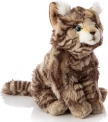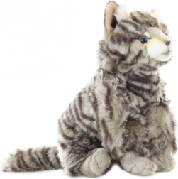 Ova plišana mačka ima realistične uzorke i boje koji joj daju autentičan izgled prave mačke.