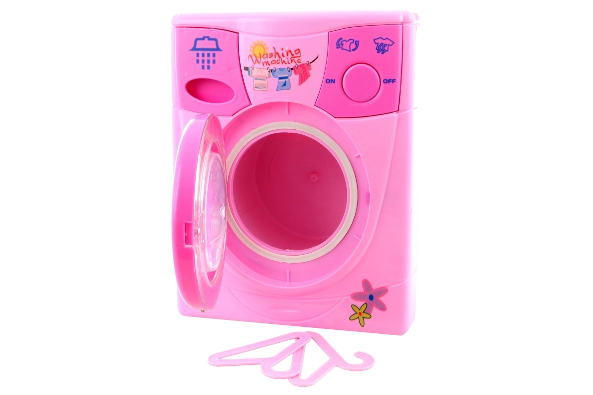 Dio pakiranja su i 2 vješalice, pa se djeca mogu igrati kompletnog pranja i vješanja rublja. Napajanje osiguravaju 2× AA baterije (nisu uključene), zahvaljujući kojima perilica oživljava zvukom i pokretom. Izdržljiv plastični materijal pogodan je za svakodnevnu igru.