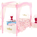 - Krevet s baldahinom, prekrivač, jastučić, 2 noćna ormarića, 2 lampice