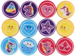 Svaki set sadrži 12 različitih pečata s jednorozima, zvijezdama, srcima i oblacima. Djeca mogu lako miješati i kombinirati otiske pri izradi čestitki ili ukrašavanju bilježnica.
