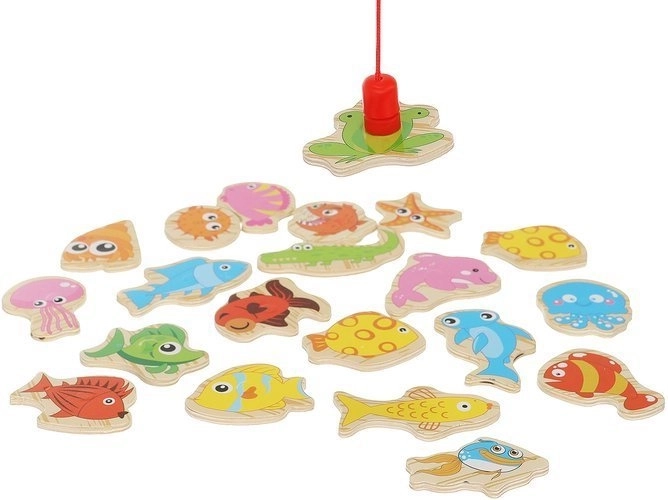 Ova drvena magnetska igra izvrstan je izbor za zajedničku obiteljsku zabavu. Djeca love simpatična morska bića pomoću magnetskih štapova, pri čemu vježbaju koordinaciju oko–ruka, strpljenje i preciznost. Zahvaljujući živim bojama i prijateljskom dizajnu, igra prirodno budi znatiželju i uči o svijetu vode.