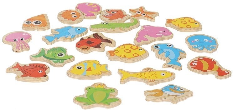 Set sadrži sve potrebno: 22 drvene životinjice s magnetom, 2 drvene udice/štapa i okruglu posudu koja služi kao “akvarij”. Sigurni, glatki rubovi i prevaga prirodnog drva čine je sigurnom i izdržljivom igračkom za djecu od 3 godine naviše. Odlično za individualnu i skupnu igru, razvoj komunikacije i suradnje.