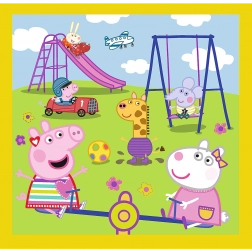 Ovaj čarobni set slagalica 3u1 s motivima PRASE PEPPA donosi djeci mnogo radosti i potiče razvoj. Tri slike s različitim stupnjem težine omogućuju svakome slaganje vlastitim tempom – izvrsno za braću i sestre ili prijatelje. Različit broj dijelova podržava strpljenje, koncentraciju i finu motoriku.