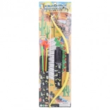 Indijanski set sadrži 1x luk cca 50 cm, 3x strijela s futrolom cca 26 cm, 1x nož s futrolom cca 20 cm. dob 3+