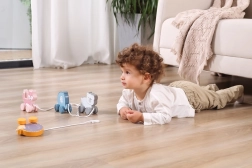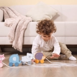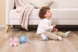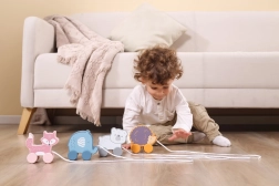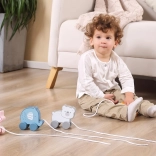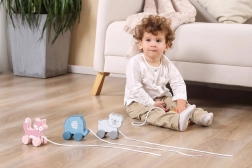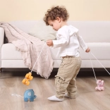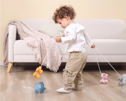 Vučna igračka je lagana, jednostavna za držanje i sigurna – ima glatke rubove i kvalitetnu završnu obradu. Odlično se uklapa za igru kod kuće i u šetnji po stanu. Kompaktna veličina olakšava spremanje i prenošenje.
