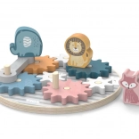 Potičite zabavu i razvoj s našim drvenim zupčastim kockama, gdje mehanika postaje igra. Set sadrži 7 šarenih zupčanih dijelova, 3 zabavne figurice životinja i osnovnu ploču na koju možete postaviti zupčanike tako da jedan pokreće ostale.