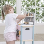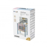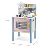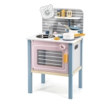 Obradujte djecu ovom drvenom kuhinjicom koja uključuje štednjak, pećnicu i sudoper. Set sadrži i posuđe te dodatke prikladne za djecu od tri godine.
