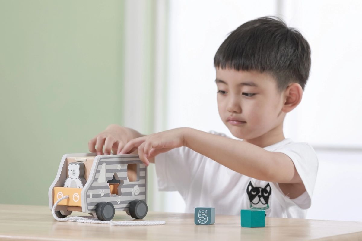 Drvena vučna igračka i umetaljka - kamion