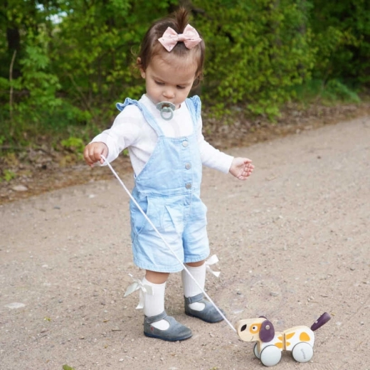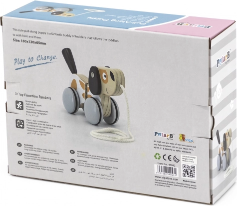 Drveni psić na uzici iz kolekcije VIGA POLARB prati djecu na njihovim prvim šetnjama i pretvara svaki korak u zabavu. Zahvaljujući gumenim navlakama na kotačićima vožnja je tiha i glatka, a kada dijete povuče, repić veselo maše.