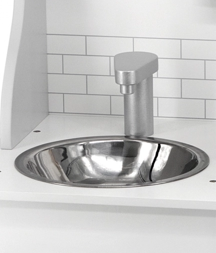 Ugrađeni timer i ormarić za pohranu posuđa potiču organiziranost, odgovornost i razvoj fine motorike tijekom igre.