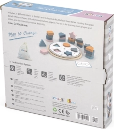 Otkrijte zabavnu i edukativnu igru uz koju djeca prirodno usvajaju prepoznavanje oblika i boja. Okretna ploča omogućuje mijenjanje kolorističkih uzoraka, pa igra ostaje uvijek atraktivna i raznolika. Kartice s predlošcima vode djecu korak po korak i razvijaju njihovu logiku, koncentraciju i koordinaciju oko–ruka.