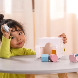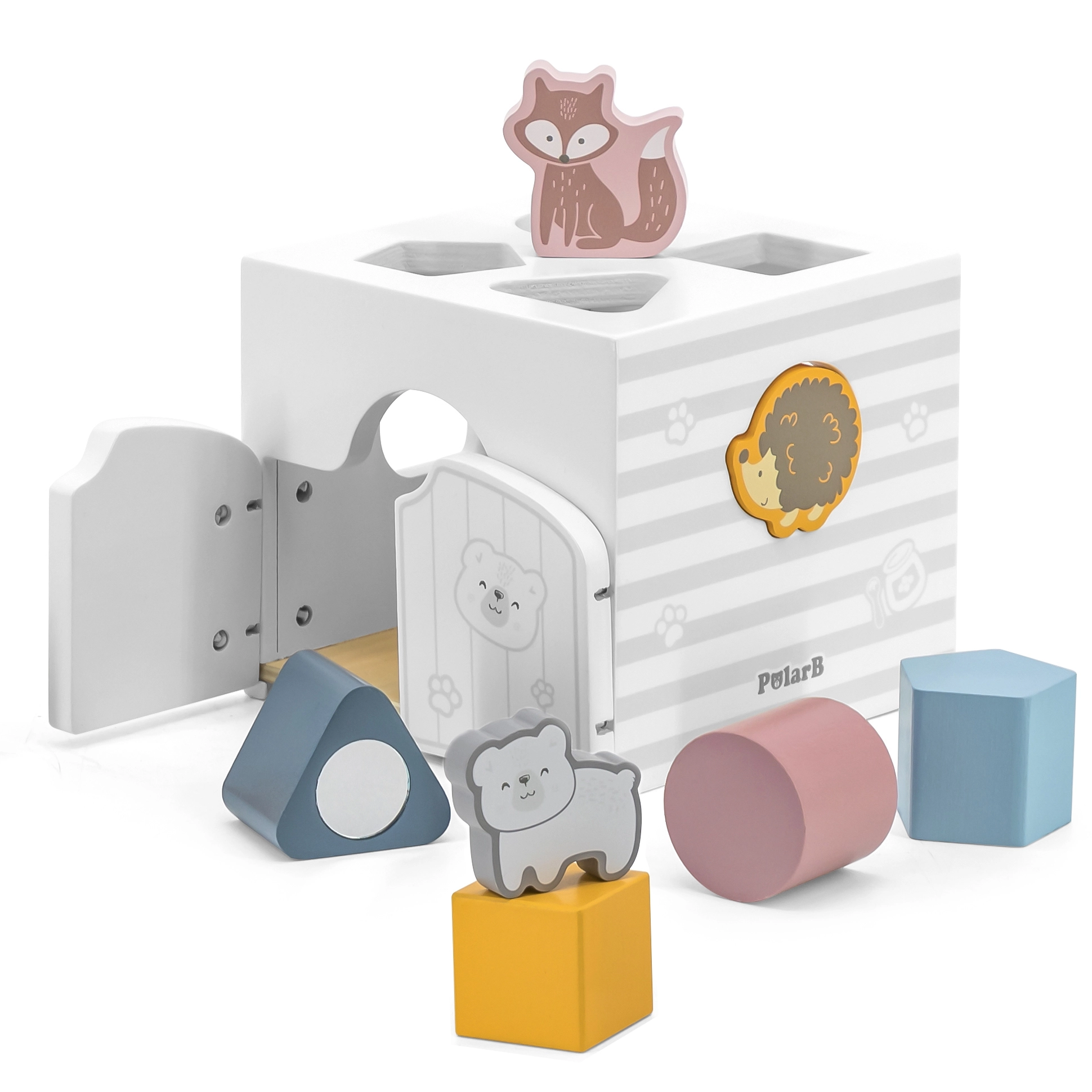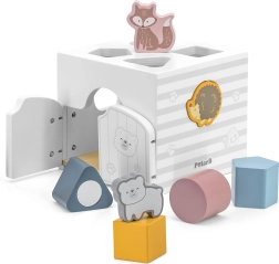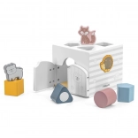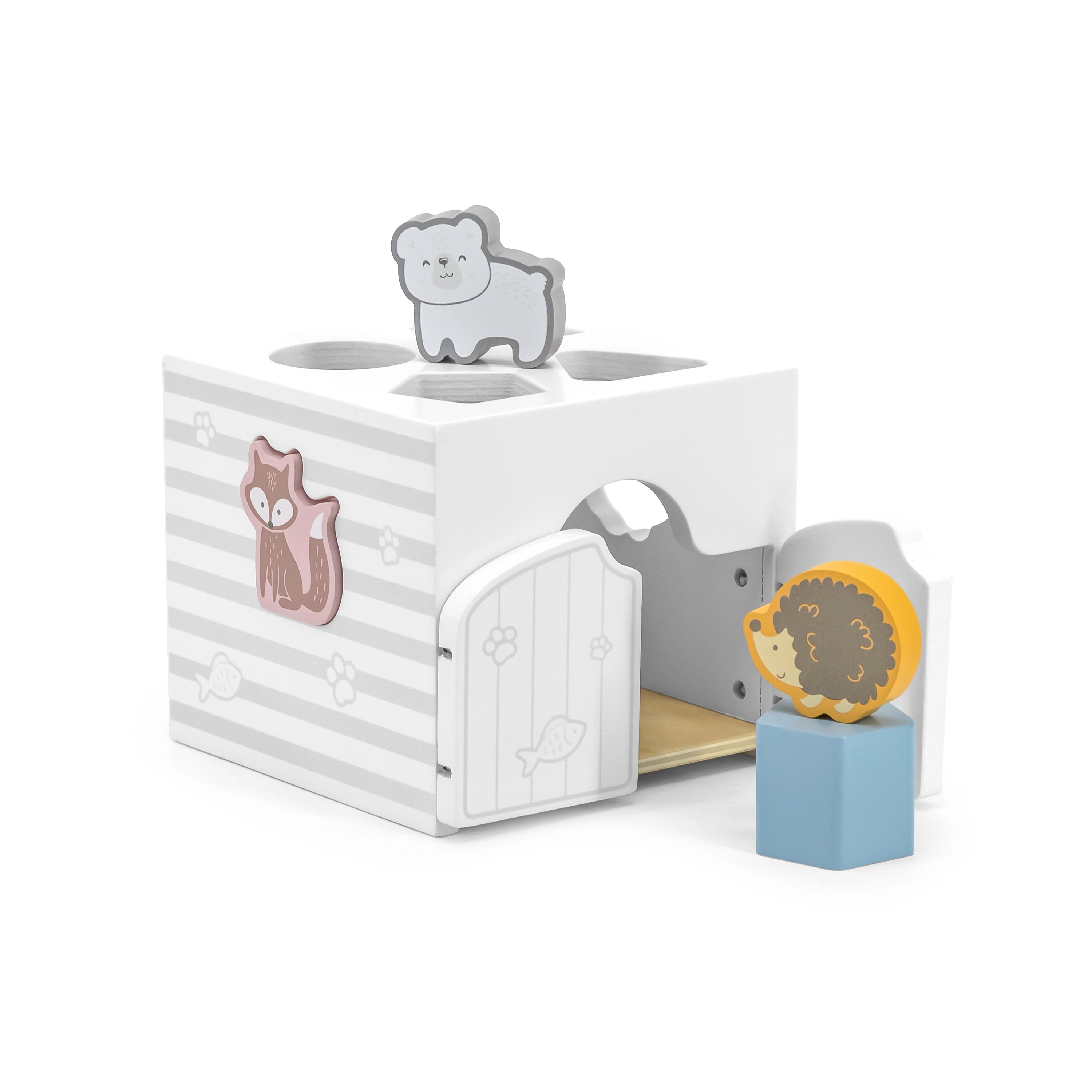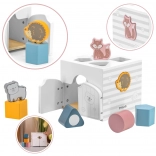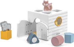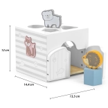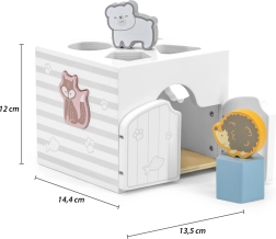 Drvena slagalica s životinjama. Kockice zveckaju. Dimenzije slagalice cca 13,5 x 12 x 14,4 cm. Dimenzije pakiranja cca 15 x 14,5 x 13 cm. Dob 18m+