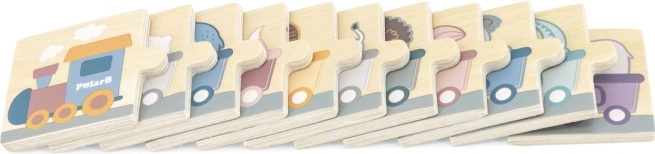 Ovaj drveni edukativni set podržava rano učenje kroz igru. Djeca tijekom slaganja upoznaju boje, uče brojati i vježbaju logičko razmišljanje. Vlakić sa životinjicama i vagončićima s brojevima prirodno vodi do razumijevanja slijeda brojeva.