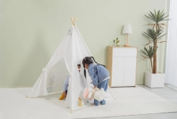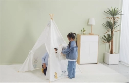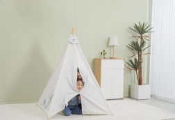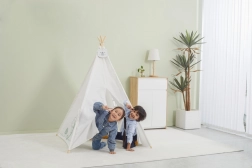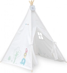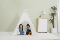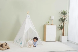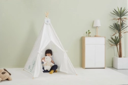 Teepee šator POLARB pretvara svaku sobu u čarobno mjesto puno mašte. Minimalistički dizajn u bijeloj boji s simpatičnim životinjskim motivima uklapa se u moderan interijer i stvara djeci miran, inspirativan prostor. Čvrsta konstrukcija s drvenim štapovima osigurava stabilnost tijekom igre, a lako se sklapa i rasklapa.