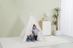 Zahvaljujući velikodušnim dimenzijama, u šator se udobno smještaju djeca, omiljene igračke i jastučići. Idealan je za maštovite igre, čitanje knjiga i odmor. Šator se može koristiti u zatvorenom i na otvorenom – odličan izbor za ljeto u vrtu ili na terasi.