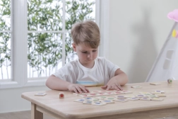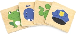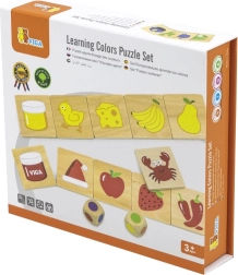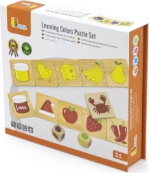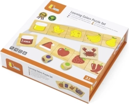 Drvena edukativna igra uz koju djeca uče razlikovati boje i ispravno ih pridruživati slikama. Djeca ne samo da upoznaju boje, već stječu i znanje o predmetima, biljkama ili životinjama povezanim s tim bojama, što jača njihovo razumijevanje svijeta oko njih.