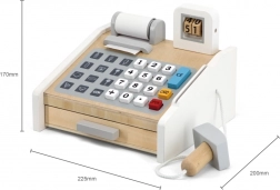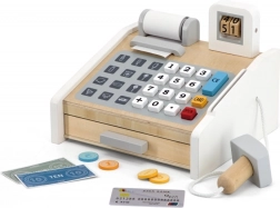 Kasa ima realističan dizajn s zaslonom i ladicom na izvlačenje, što djeci pruža dojam stvarne uporabe kase.