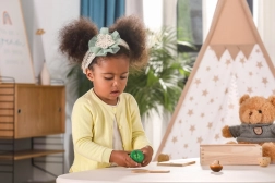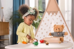 Set omogućuje djeci vježbanje fine motorike prilikom rezbarenja i sastavljanja povrća u izvorne oblike.