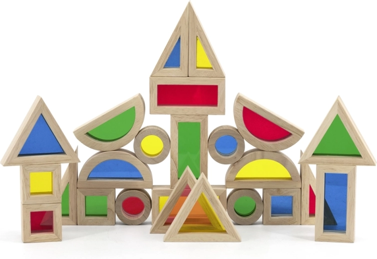 Uz ovaj set drvenih kocaka djeca otkrivaju svijet boja i oblika. Svaka kocka osmišljena je tako da potiče maštu i uči djecu novim vještinama. S ovom igračkom djeca mogu graditi različite strukture i vježbati osnovne matematičke sposobnosti.