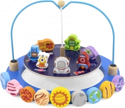 Uz drvenu igru Balansirajuća igra - Svemirska zabava djeca uranjaju u svemirsku avanturu. Ova zabavna i edukativna igra sadrži bazu dimenzija 26 x 26 x 18 cm, koja podsjeća na disk sa svemirskim motivima.
