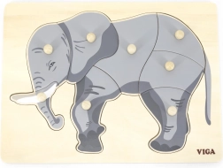 Ova prekrasna drvena slagalica s umetkama s motivom slona idealna je za razvoj kognitivnih vještina i fine motorike vašeg djeteta. Svi dijelovi opremljeni su ručkicama koje djeci omogućuju jednostavno rukovanje.
