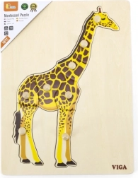 Ova drvena slagalica s umetkom s motivom žirafe izvrstan je prvi puzzle za najmlađe. Dijelovi imaju praktične gumbiće, zahvaljujući kojima je rukovanje jednostavno te prirodno potiče pravilan hvat i strpljenje. Kvalitetna izrada brenda VIGA jamči dugotrajnost i veselje u igri.