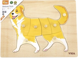 Prva slagalica za djecu od 18 mjeseci: drvena Montessori umetaljka s motivom psa od VIGA. Zahvaljujući ručkicama dijelovi se lako drže, razvijaju finu motoriku, koordinaciju oko–ruka i logičko razmišljanje. Izdržljivo drvo i sigurne boje. Veličina ploče 30 × 22,5 cm.