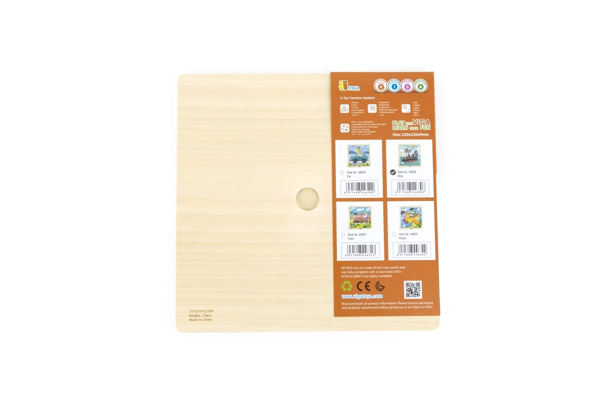 Proizvod je izrađen od kvalitetnog drva, ima glatke, zaobljene rubove te je obojan netoksičnim i djeci sigurnim bojama. Nakon umetanja svih dijelova nastaje cjelovita slika broda – idealno za prve uspjehe malih graditelja.