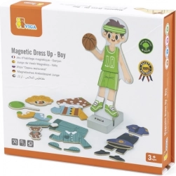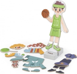 Ova kvalitetna drvena igračka brenda VIGA nudi zabavno presvlačenje magnetske figurice dječaka. Zahvaljujući raznoj odjeći i dodacima djeca lako stvaraju originalne outfite, vježbaju prstiće i uče kombinirati boje i stilove.