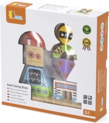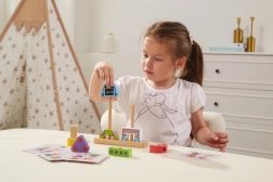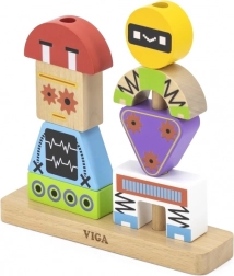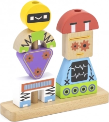 Otkrijte pametnu igračku koja raste s djecom. Drveni dijelovi raznih oblika i boja lako se stavljaju na igle baze i omogućuju slaganje različitih robotskih likova. Priložene kartice s predlošcima vode od jednostavnih do zahtjevnijih kombinacija te razvijaju koncentraciju i strpljenje.
