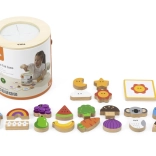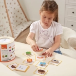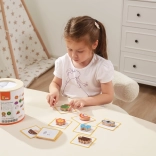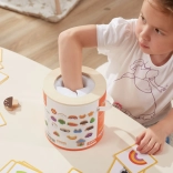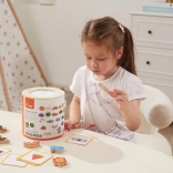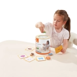 Igra Ulovi i pronađi. Pakiranje sadrži 20 kockica, papirnatu kanticu, 20 igraćih kartica i poklopac. Dimenzije pakiranja cca 16 x 15,5 cm. Dob: 3+