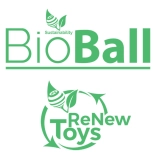 Podrška održivoj igri s logotipima BioBall i ReNew Toys, koji naglašavaju ekološku proizvodnju i odgovornost.
