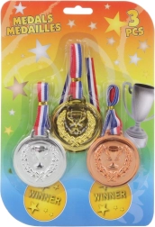 Ovaj univerzalni set medalja izvrsna je motivacija za sve male sportaše i igrače. Kvalitetna izrada i tri klasične boje omogućuju nagrađivanje pobjednika i ostalih plasmana u bilo kojem natjecanju. Zahvaljujući promjeru od cca 6 cm, medalje su dobro vidljive i lako se nose.