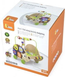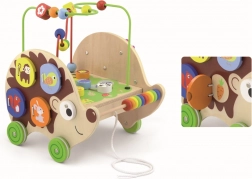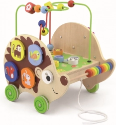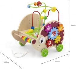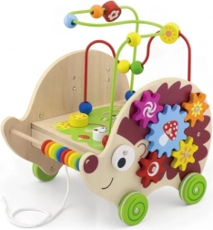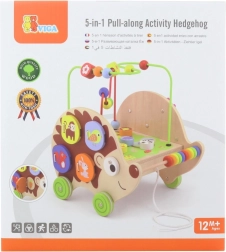 Ova multifunkcionalna vučna igračka u obliku ježa marke VIGA spaja popularne edukativne elemente u jedan pametan centar za igru. Djecu zabavlja pomicanje perlica u kugličnom labirintu, okretanje zupčanicima, prolazak kroz labirint sa životinjama, isprobavanje brojanja i otkrivanje edukativnih rotirajućih elemenata. Šareno izvedena, prirodno poziva na istraživanje i potiče koncentraciju.