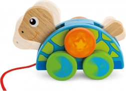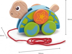 Ova šarena drvena vučna kornjača osmišljena je da motivira djecu na hodanje, potiče koordinaciju pokreta i prirodno razvija finu i grubu motoriku. Robusna drvena izrada i ugodno zaobljeni rubovi osiguravaju sigurnu igru, dok izražajne boje i razigran dizajn potiču vizualnu percepciju.
