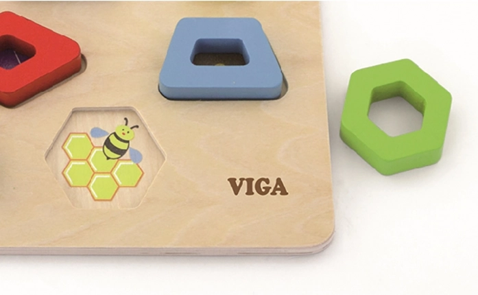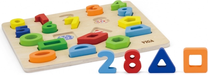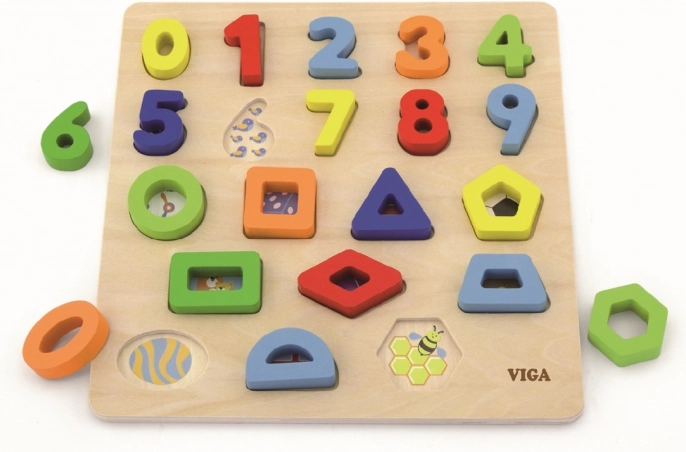Drvena slagalica VIGA – brojevi i oblici odličan je način da se djeca upoznaju s prvim brojkama i osnovnim geometrijskim oblicima. Zahvaljujući živim bojama i čvrstoj drvenoj izradi djeca vježbaju koordinaciju oko–ruka, razlikovanje oblika i boja te logičko razmišljanje. Svaki dio ima svoje mjesto, što potiče strpljenje i koncentraciju.