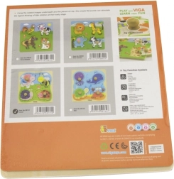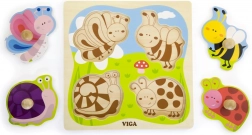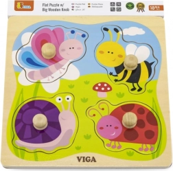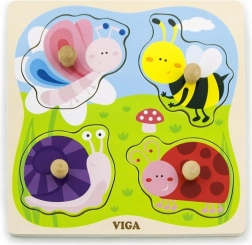Drvena slagalica s utorima VIGA s 4 velika dijela s ručkicama idealna je prva slagalica za najmlađe. Šareni motivi kukaca i životinjica s livade prirodno motiviraju djecu na otkrivanje i učenje. Urezani rubovi na čvrstoj drvenoj podlozi pomažu da svaki dio pouzdano ostane na svom mjestu.