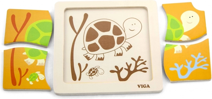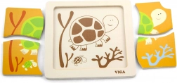 Drvene puzzle s kornjačicom dizajnirane su za djecu od 18 mjeseci. Sastoje se od četiri velika dijela koji se lako uklapaju u drveni okvir ili se mogu slagati zasebno. Svaki je dio šaren i nudi jedinstven način za razvoj dječje prostorne mašte i koordinacije oko-ruka.
