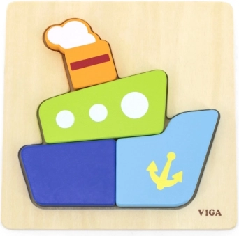 Otkrijte prve drvene slagalice za najmlađe brenda Viga. Ova jednostavna slagalica od 4 dijela u obliku broda na čvrstoj drvenoj podlozi potiče finu motoriku, koordinaciju oko–ruka i prepoznavanje oblika. Izrađeno od kvalitetnih materijala i obojeno netoksičnim bojama – sigurna zabava za djecu i okoliš.