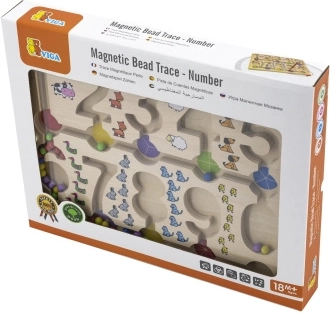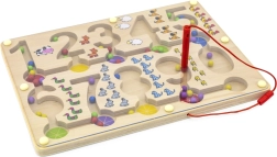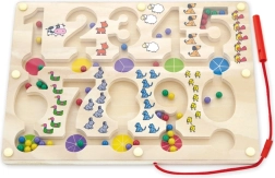Uđite u svijet učenja i zabave s Magnetičkim Labirintom - Brojevi. Ova drvena ploča s brojevima i šarenim kuglicama nudi sjajan način za razvoj matematičkih vještina i fine motorike kod djece.
