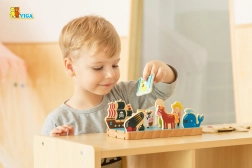 Drvena edukativna slagalica Viga idealna je igračka za djecu od 18 mjeseci za razvoj prostorne orijentacije i kognitivnih sposobnosti. Sadrži šarene drvene figurice u dizajnu farme i mora.