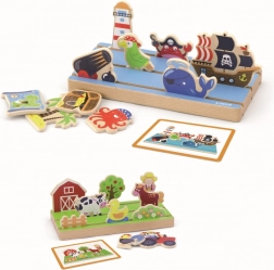 Ova zabavna i edukativna slagalica pomaže djeci razumjeti prostorne odnose i podržava njihov kognitivni razvoj. Djeca mogu slagati različite scene na višeslojnoj ploči koja nudi farme i morske avanture.